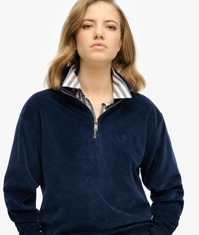 Superdry Women's Velour Half Zip Sweatshirt Navy / Richest Navy