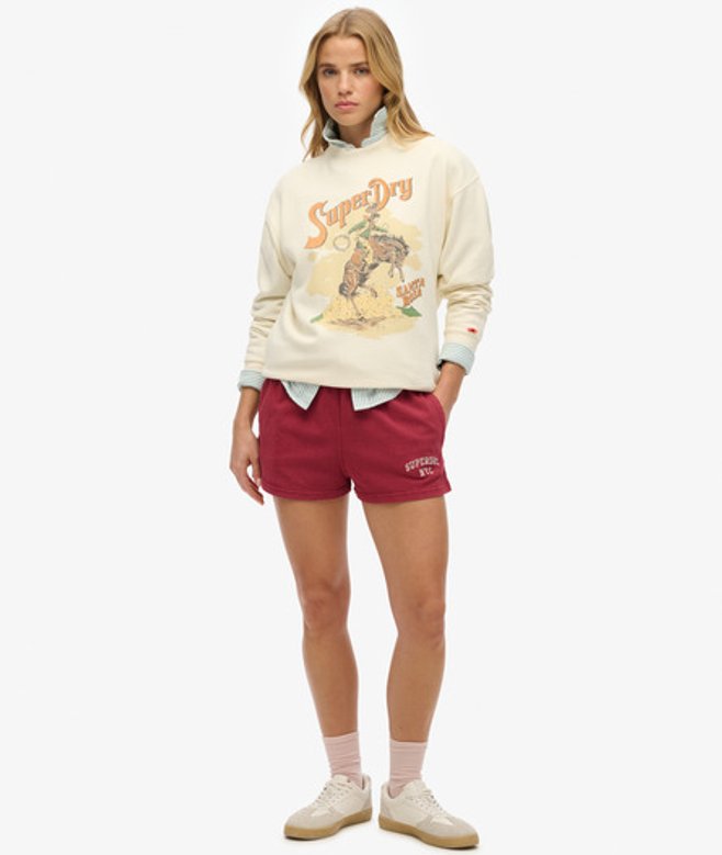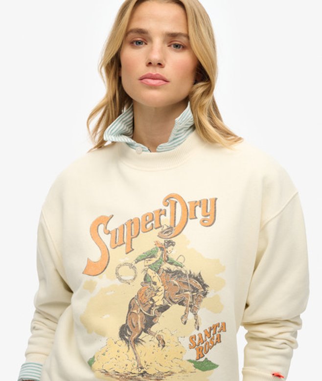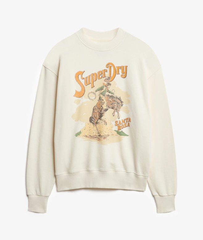 Loose Fit - where comfort meets cool, a stylish loose cut makes this a must-have shape Ribbed crew neckline with ribbed cuffs and hemline Lightly brushed lining with dropped sleeves Large graphic across the chest Signature tab on the cuff Signature Superdry, crafted for you.