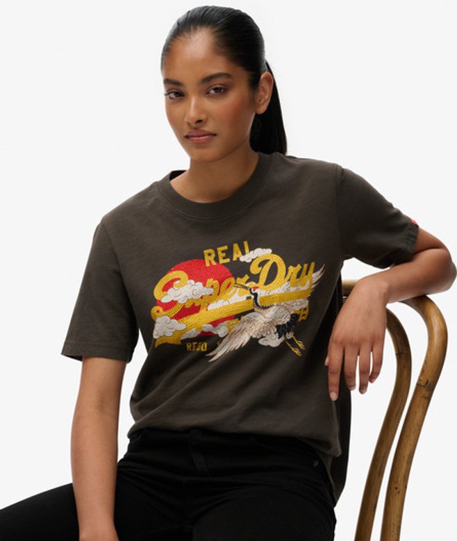 Superdry Women's Vintage Logo Tokyo Relaxed T-shirt Black / Vintage Black Slub