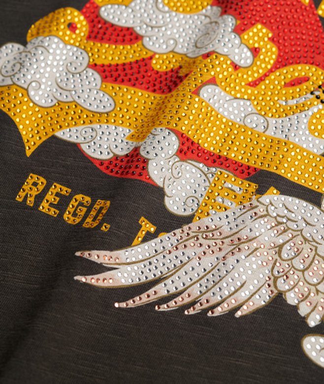 Go for your normal size Ribbed crew neckline with short sleeves Embellished graphic across the chest Signature tab on the sleeve A fun refresh on the classic Superdry tee.