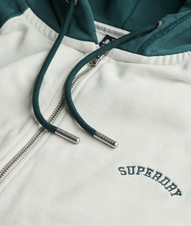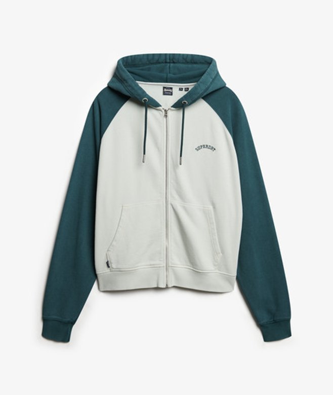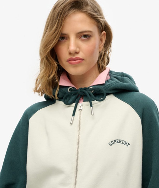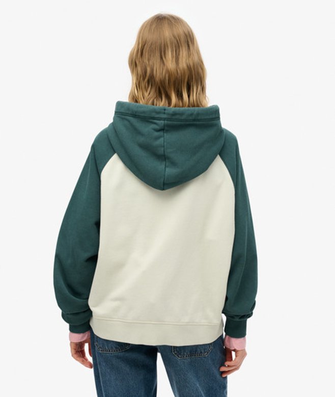 Superdry Women's Essential Logo Oversized Raglan Zip Hoodie Cream / Desrt Bone Off Wht/d Pne Green
