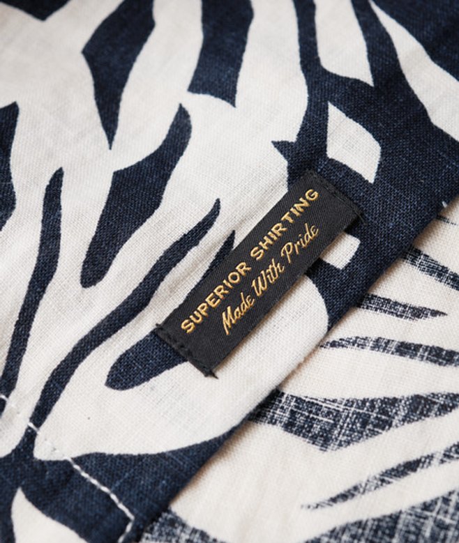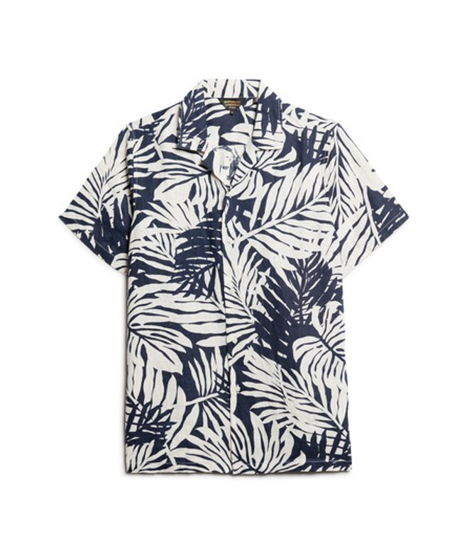 Superdry Men's Open Collar Printed Linen Shirt Black / Philip Mono Print
