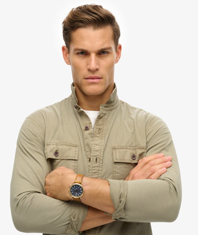 Button through design with a standard collar Long sleeves with button-fastening at the cuffs Two front chest pockets with button fastenings Whether worn open over your favourite tee or styled on its own, the Military Long Sleeve Shirt offers an authentic look that can swing from casual to smart with ease.