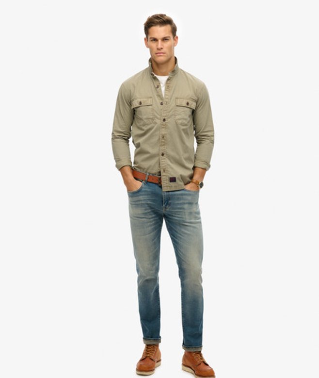Superdry Men's Military Long Sleeve Shirt Khaki / Light Khaki Green