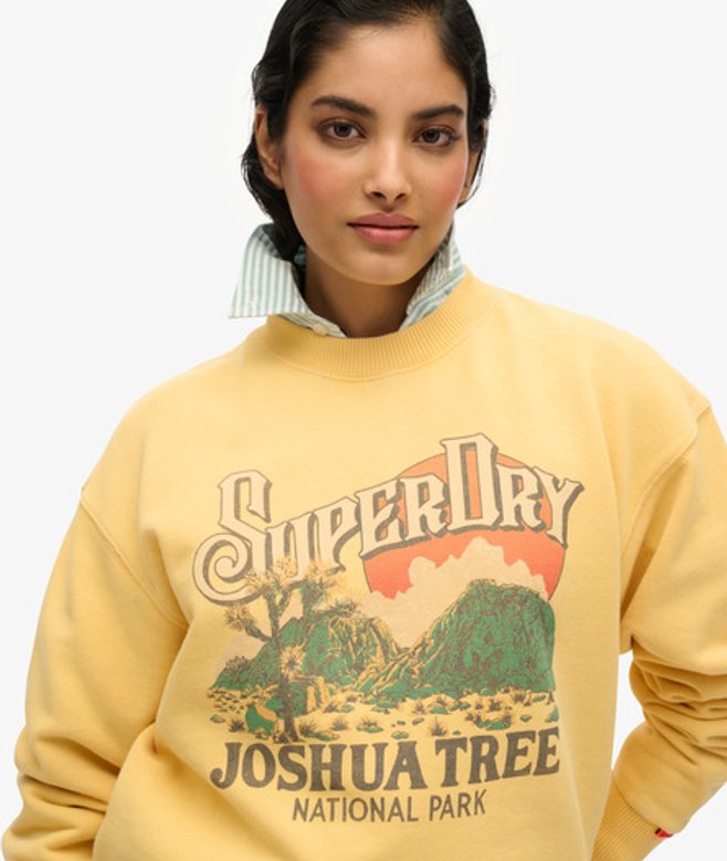 Loose Fit - where comfort meets cool, a stylish loose cut makes this a must-have shape Ribbed crew neckline with ribbed cuffs and hemline Lightly brushed lining with dropped sleeves Large graphic across the chest Signature tab on the cuff Signature Superdry, crafted for you.