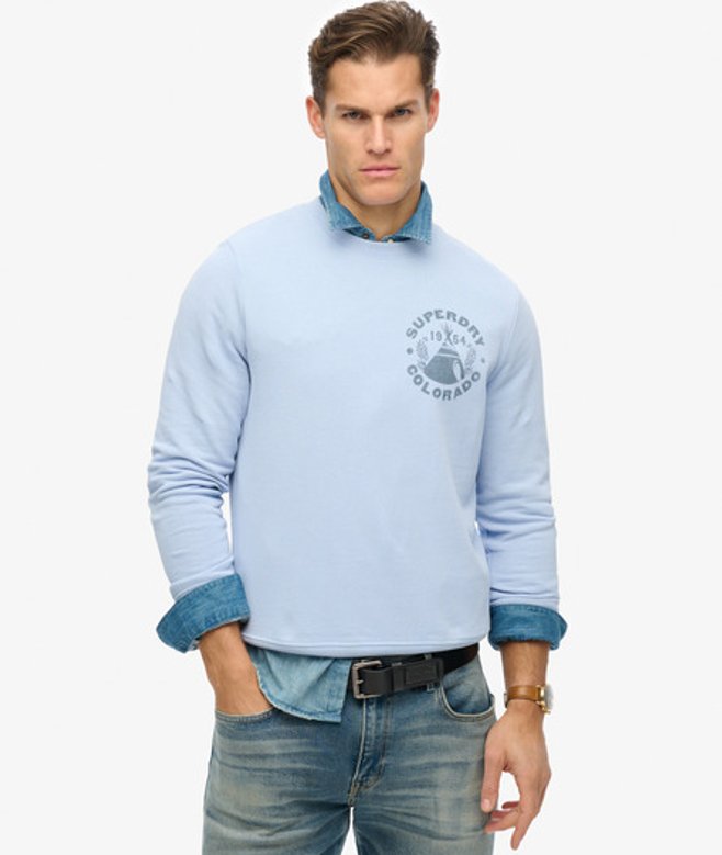 Superdry Men's Lo-fi Outdoor Mono Relaxed Crew Sweatshirt Light Blue / Blue Heron