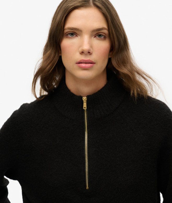 Superdry Women's Brushed Half Zip Jumper Black | ricciano UNITED KINGDOM