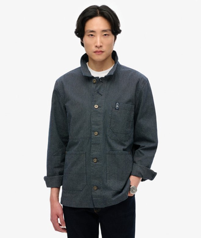 Superdry Men's The Merchant Store - Stripe Worker Jacket Blue / Indigo Stripe