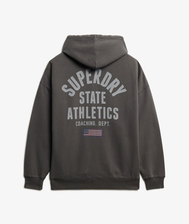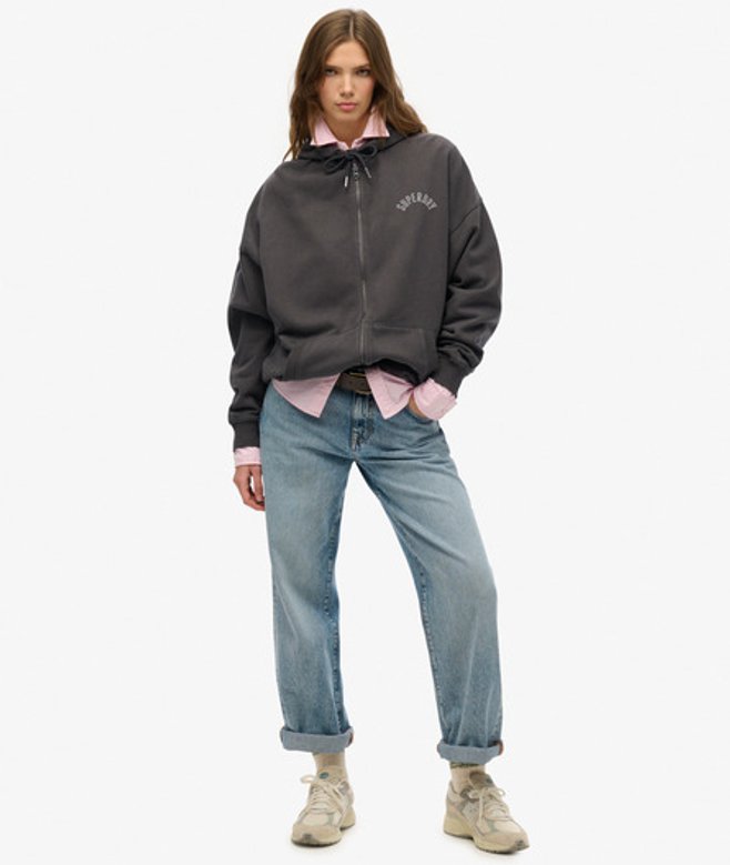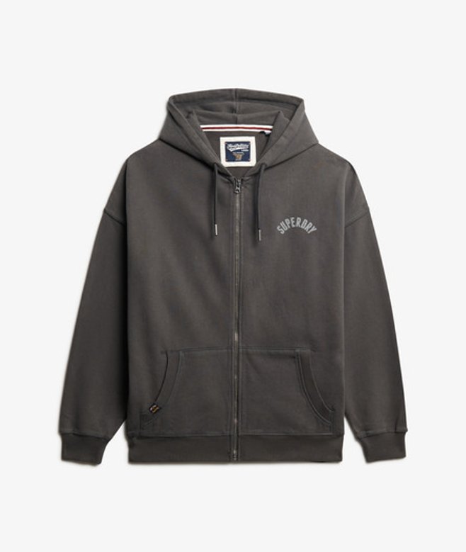 Oversized fit - exaggerated and super relaxed, let your style flow Ribbed cuffs and hem Zip fastening Textured inner hood Two front pockets Printed Superdry Athletic logo on chest Small embroidered logo below right cuff Our Athletic Essentials Oversized Zip Hoodie is an absolute staple of collegiate outerwear fashion, and continues to elevate with its new premium feel.