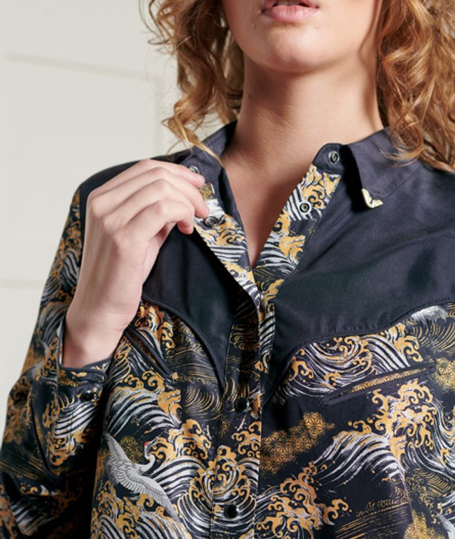 Inspired by the classic Rodeo, the Limited Edition Dry Printed Rodeo shirt takes print inspiration that links back to Japanese culture, featuring cranes which represent good luck, and bad omens.