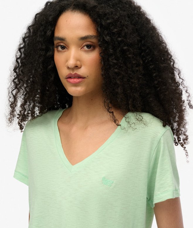 Superdry Women's Slub Embroidered V-neck T-shirt Green / Hemlock Green | ricciano UNITED KINGDOM