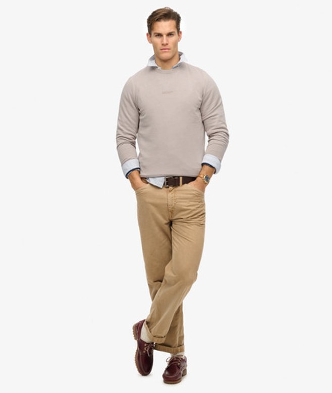 Superdry Men's Micro Logo Crew Sweatshirt Beige / Deep Beige Slub