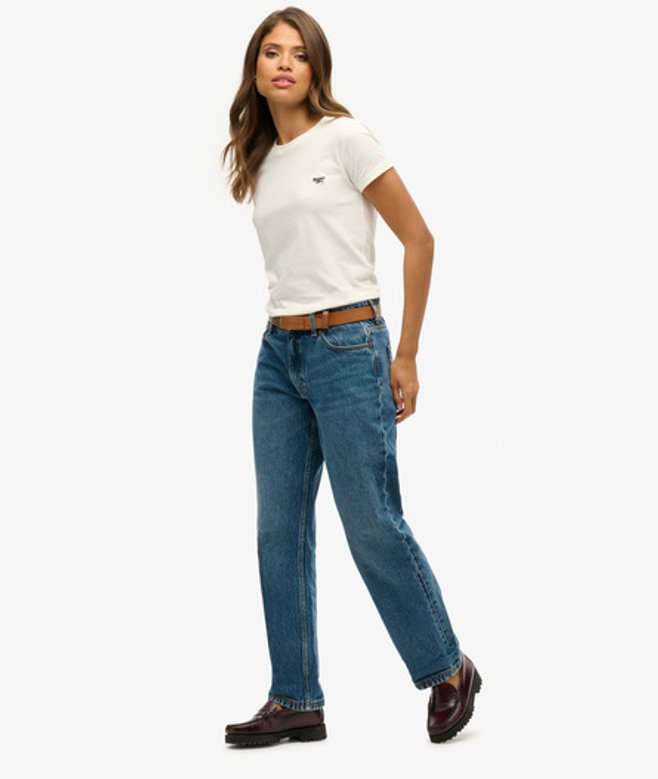 Superdry Women's Mid Rise Straight Leg Jeans Dark Blue / Fulton Vintage Blue