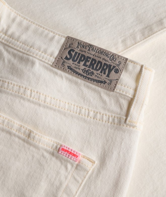 Button and zip fastening Classic five-pocket design Washed effect Superdry patch