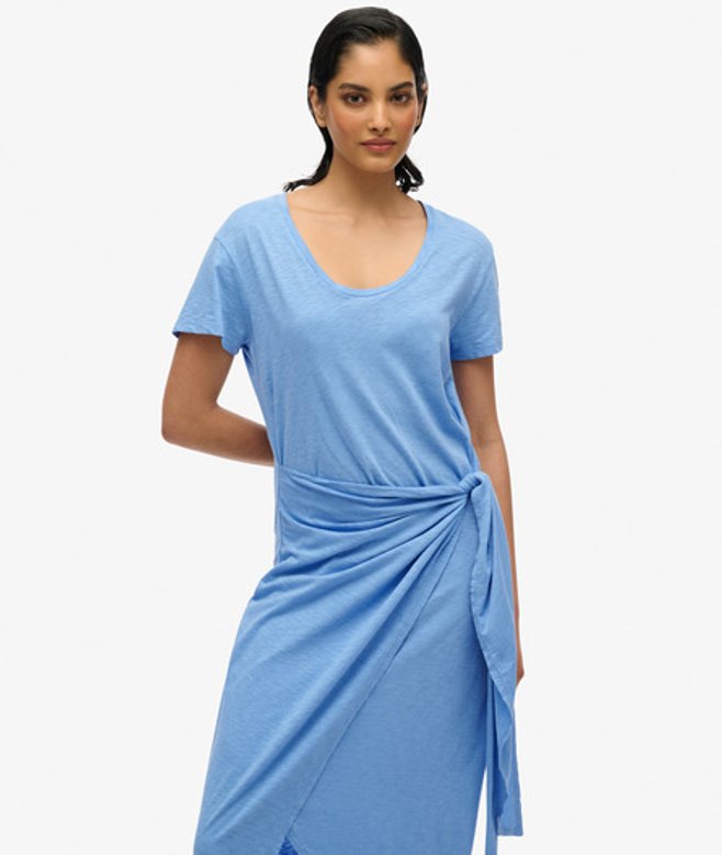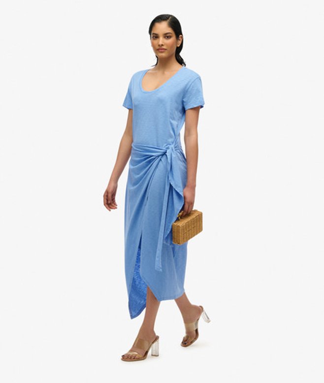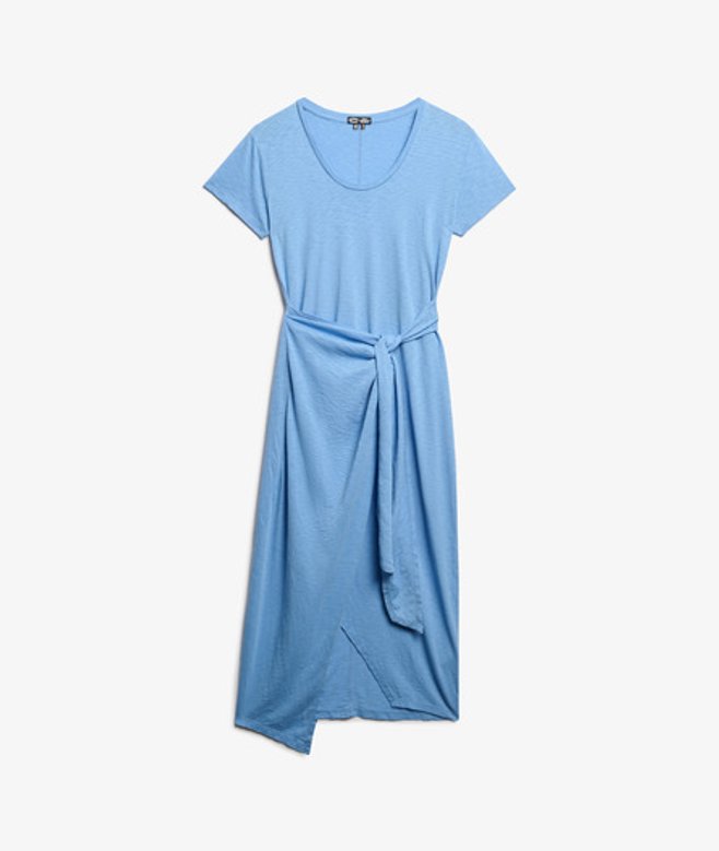 Superdry Women's Slub Midi Wrap Dress Blue / Bluebell