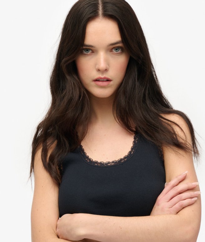 Superdry Women's Vintage Lace Trim Vest Navy / Eclipse Navy