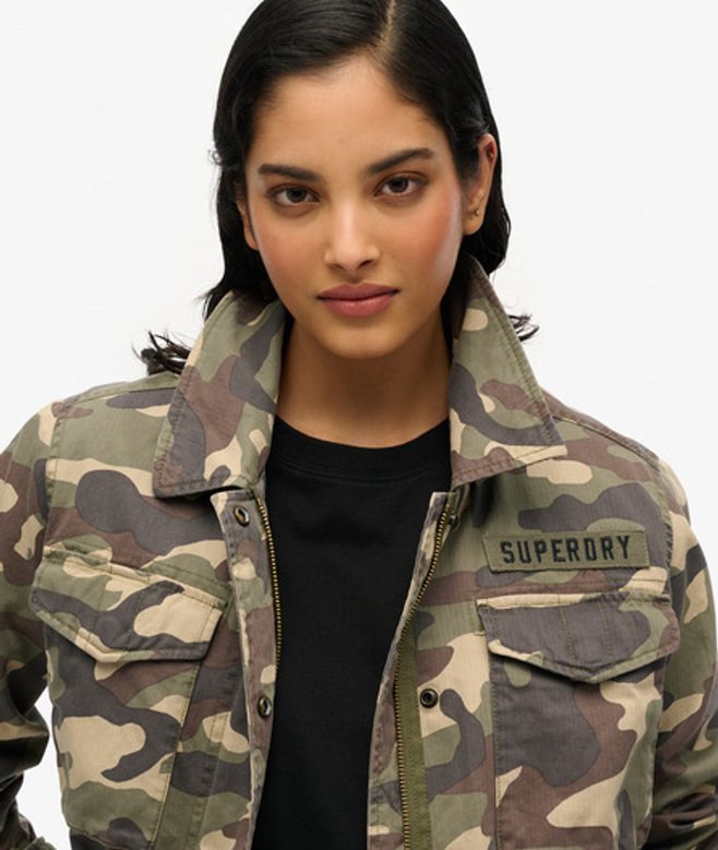 Superdry Women's Classic Embellished M65 Military Jacket, Green and Brown