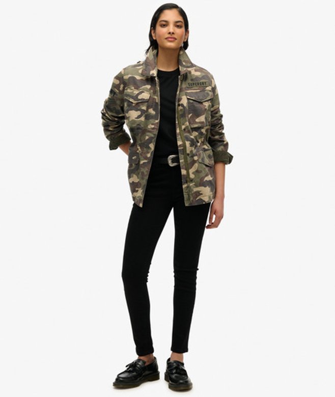 Go for your normal size Single collar with zip and popper fastening Four external pockets with one internal pocket Adjustable cord waistline Button fastening cuffs with signature tabs on the chest and sleeves Large embellished graphic on the back A Superdry classic, elevated for the fashion-lovers.