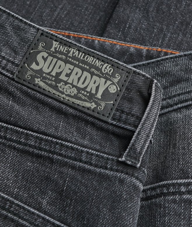 Button and zip fastening Classic five-pocket design Washed effect Superdry patch
