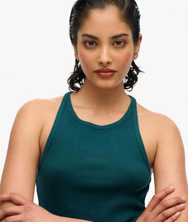 Superdry Women's Essential Logo Racer Vest Top Green / Dark Pine Green