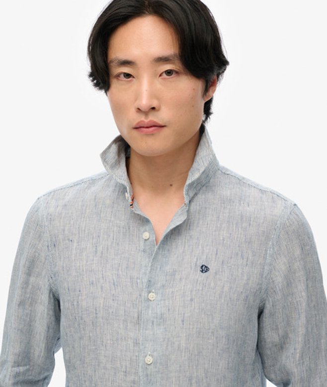 Go for your normal size Button fastening and button cuffs Embroidered Superdry logo The Embroidered Vacation Linen Shirt brings a luxurious sophisticated feel to you summer wardrobe.