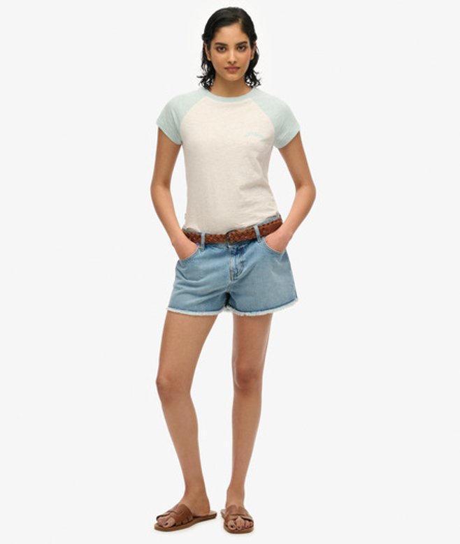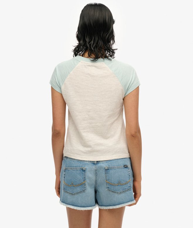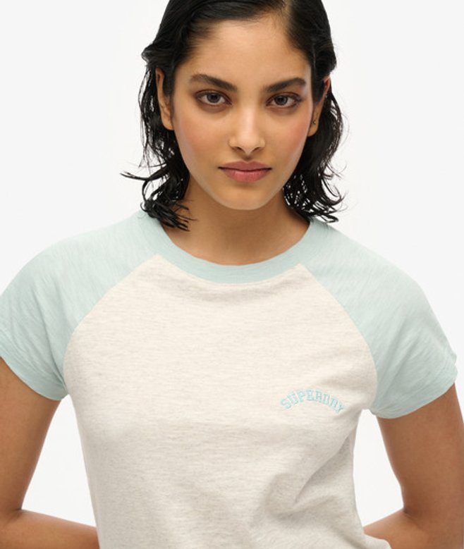 Superdry Women's Organic Cotton Essential Logo Raglan T-shirt Cream / Vintage White Marl/winter Sky Blue | ricciano UNITED KINGDOM