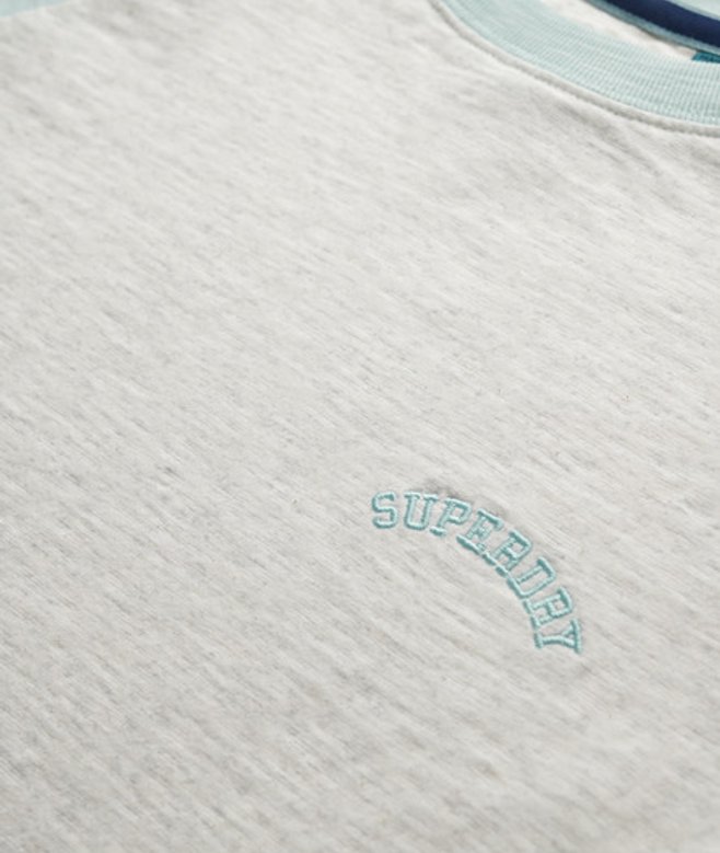 Ribbed crew neck Raglan cap sleeves Embroidered Superdry logo Signature Superdry tab