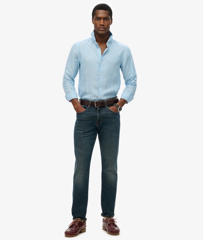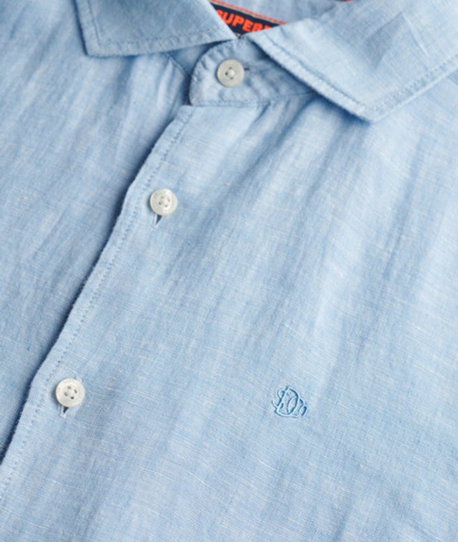 Superdry Men's Embroidered Vacation Linen Shirt Blue / Sea Blue Chambray