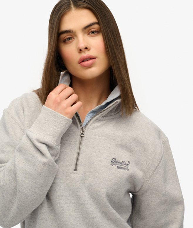 Superdry Women's Oversized Essential Logo Half Zip Sweatshirt Grey / Varsity Grey Grindle