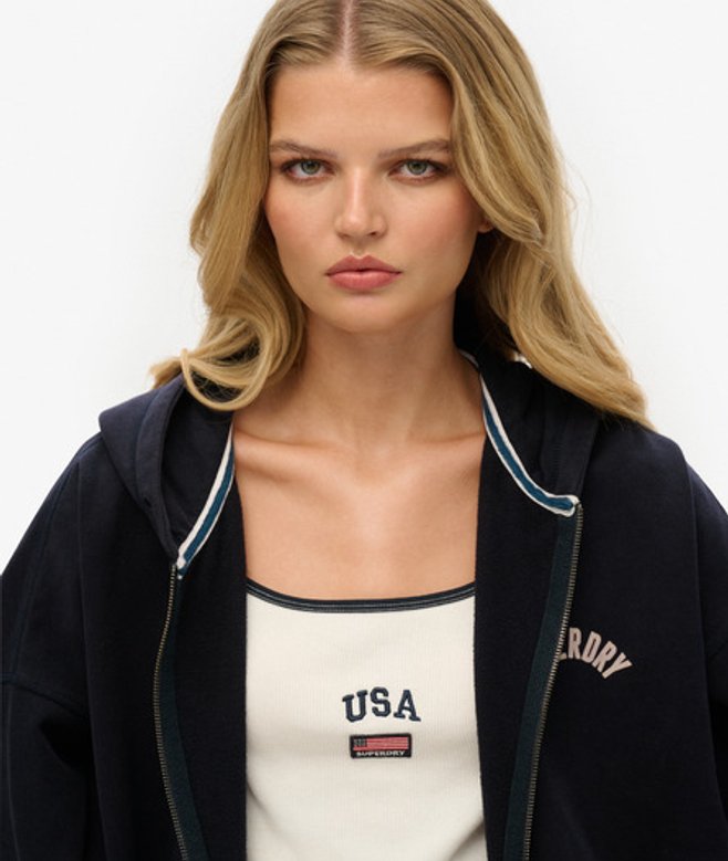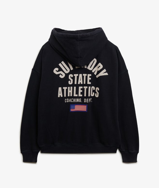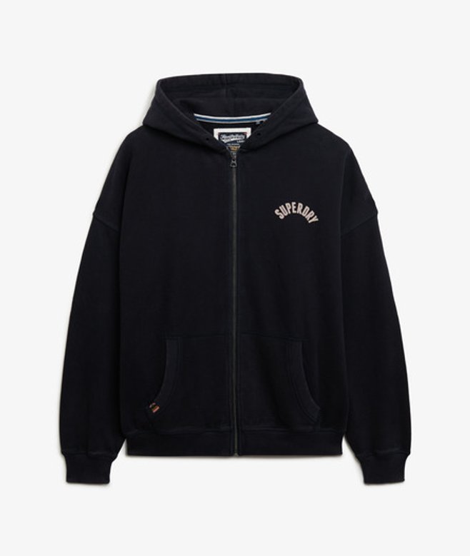 Oversized fit - exaggerated and super relaxed, let your style flow Ribbed cuffs and hem Zip fastening Textured inner hood Two front pockets Printed Superdry Athletic logo on chest Small embroidered logo below right cuff Our Athletic Essentials Oversized Zip Hoodie is an absolute staple of collegiate outerwear fashion, and continues to elevate with its new premium feel.