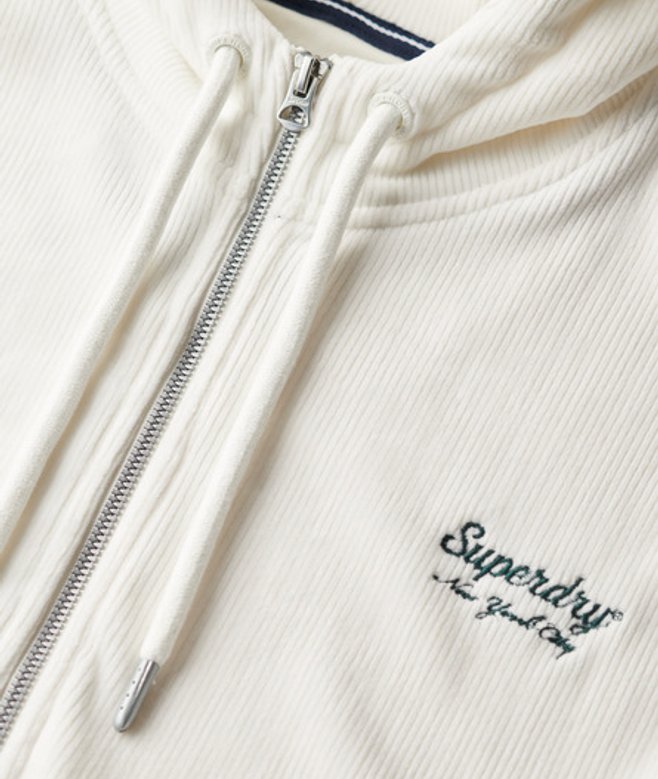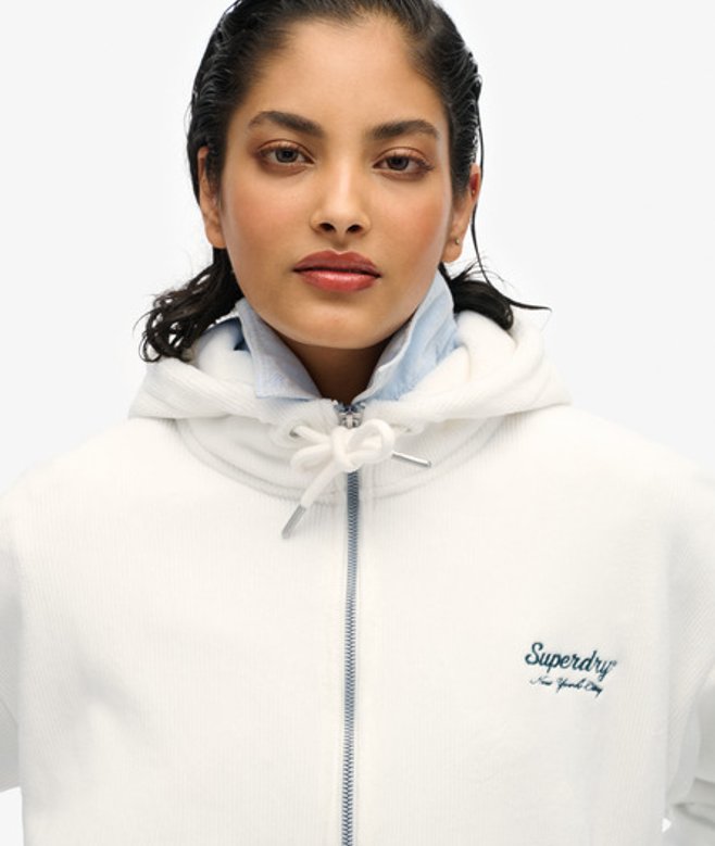 Superdry Women's Classic Embroidered Logo Country Club Velour Zip Hoodie, Cream