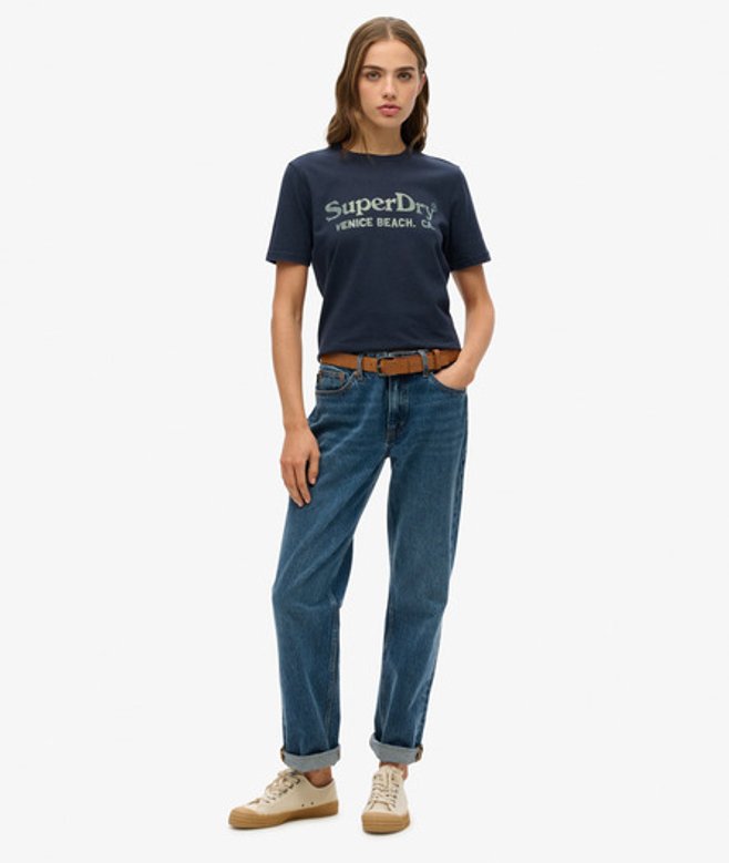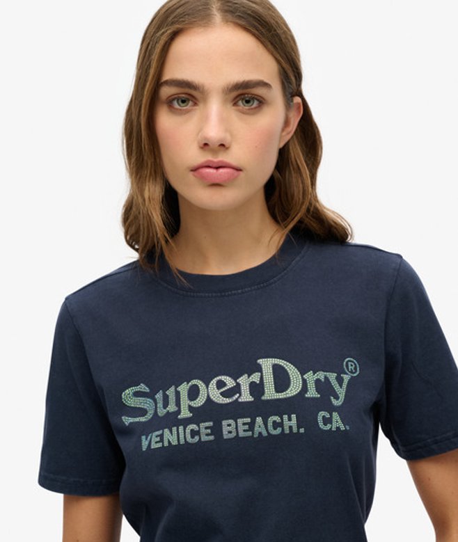 Superdry Women's Venue Metallic Relaxed T-shirt Navy / Eclipse Navy