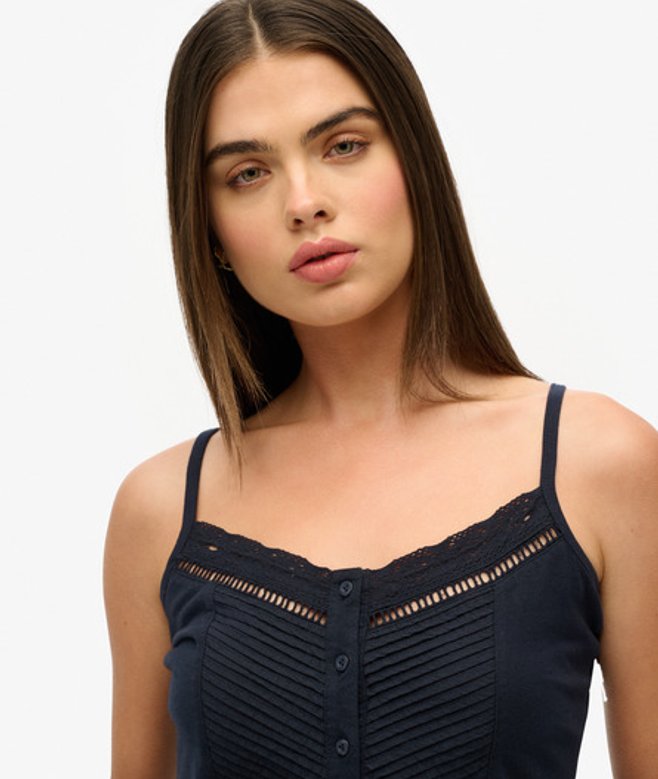 Superdry Women's Lace Button Through Cami Top Navy / Eclipse Navy