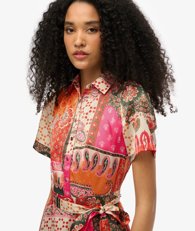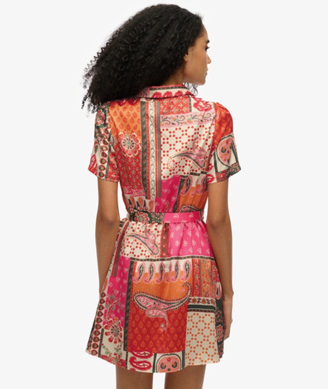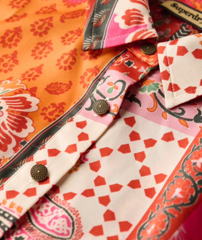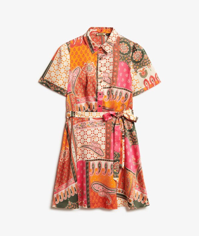 Superdry Women's Patchwork Print Mini Shirt Dress, Pink & Orange