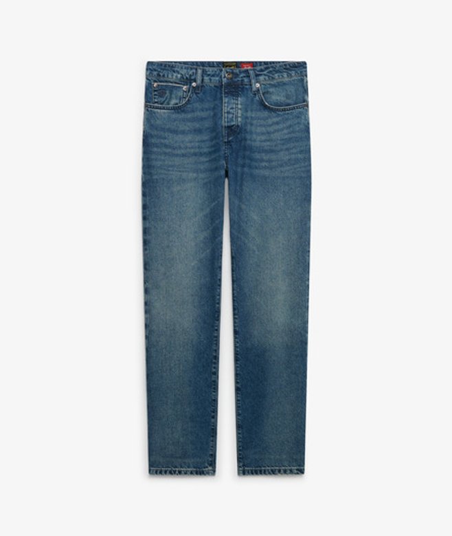Zip and button fastening with belt loops on the waist Five external pockets Signature patch on the back waist No wardrobe is complete without the perfect jeans which is why we've crafted The Merchant Store - Straight Jeans.