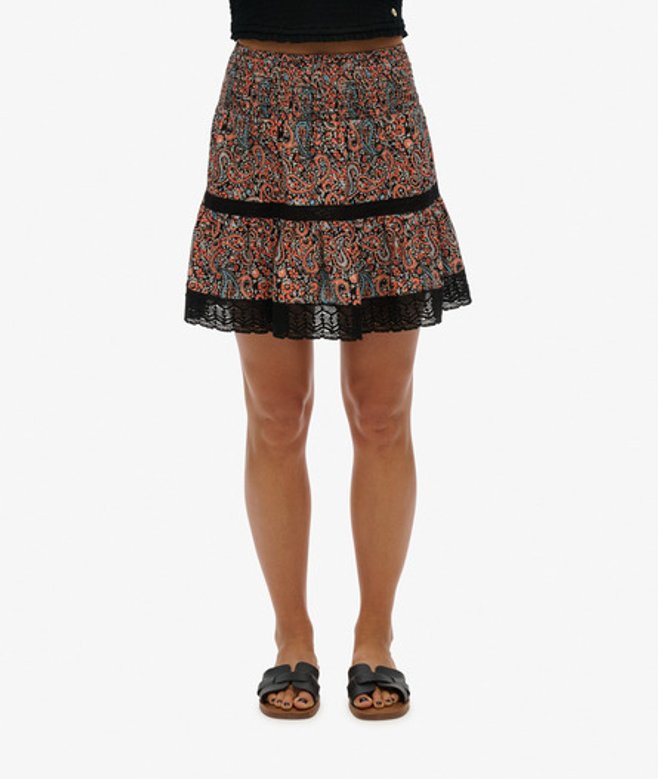 Superdry Women's Printed Lace Trim Mini Skirt Black / Block Print Paisley
