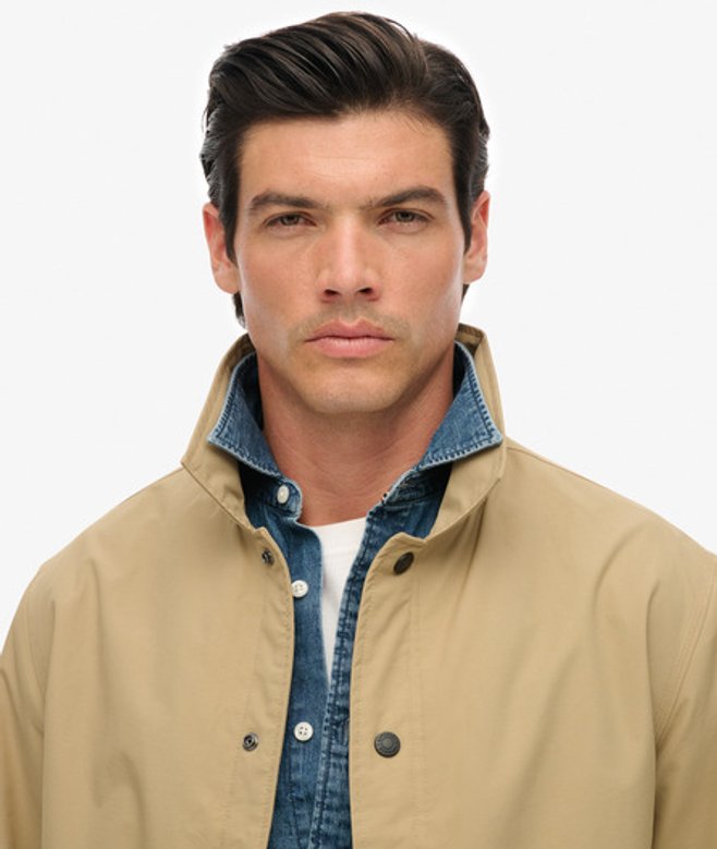 Go for your normal size Elasticated cuffs Drawstring waist Popper fastening Two external and one internal popper pocket Embroidered Superdry badge on right sleeve Our Nylon Coach Jacket simply gets the job done.