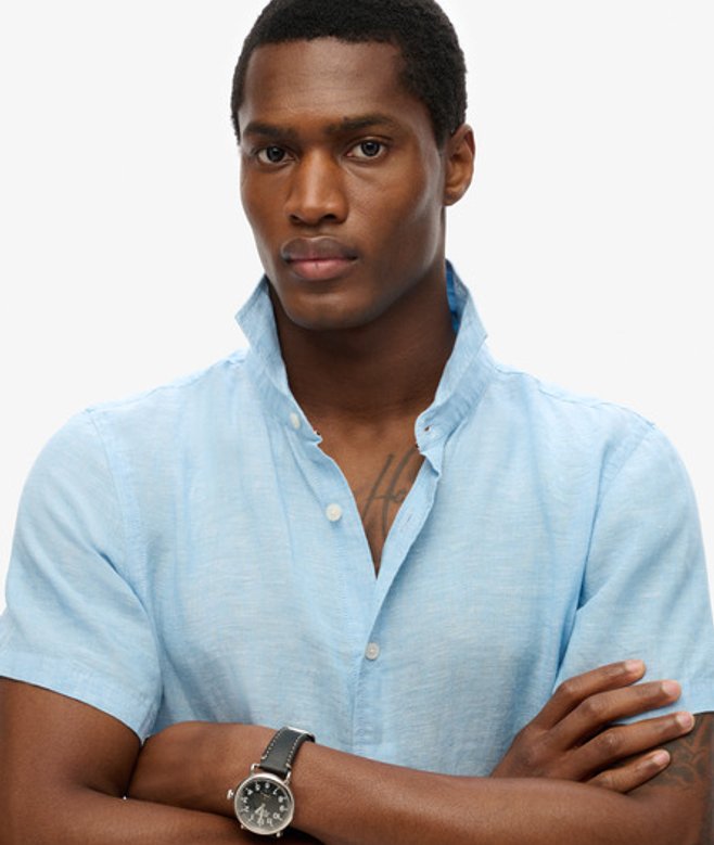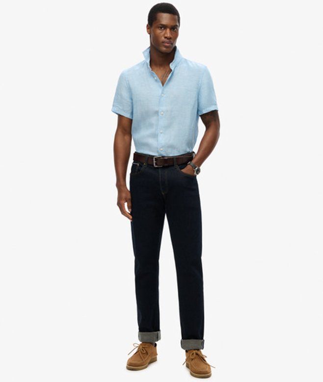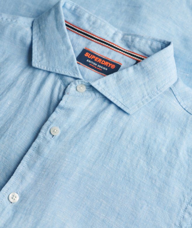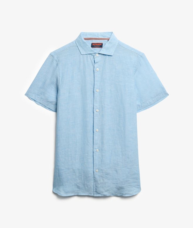 Superdry Men's Vacation Linen Short Sleeve Shirt Blue / Sea Blue Chambray