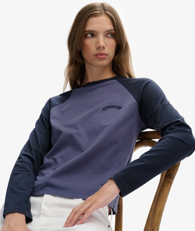 Superdry Women's Essential Logo Long Sleeve Baseball Top Navy / Richest Navy/mariner Navy
