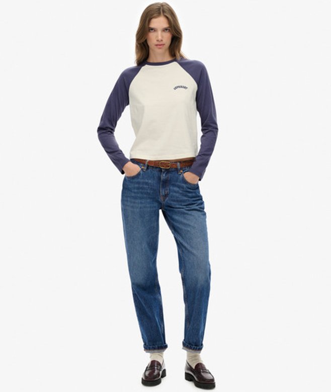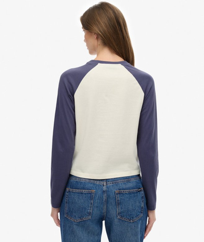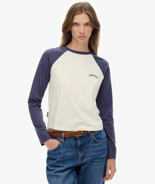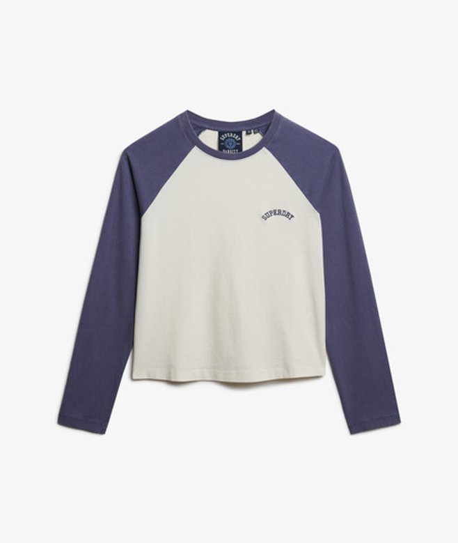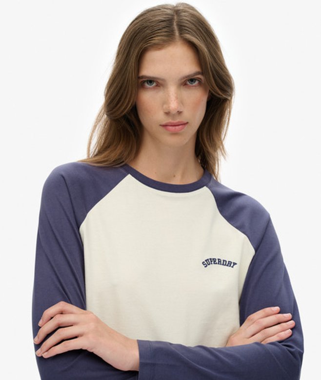 Superdry Women's Essential Logo Long Sleeve Baseball Top Navy / Mariner Navy/desert Bone Off White