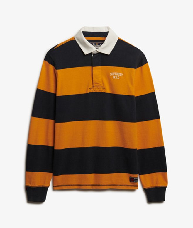 Go for your normal size Rugby collar with three-button fastening Long sleeves Ribbed cuffs Split side hem Embroidered Superdry logo Signature Superdry patch on cuff We have taken the classic silhouette of rugby-style tops and created a statement piece to accompany your casual wardrobe.