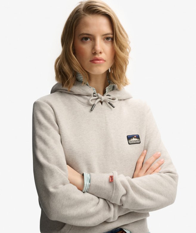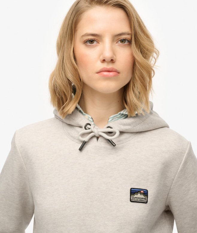 Superdry Women's Great Outdoors Embroidered Hoodie Beige / Oatmeal Marl