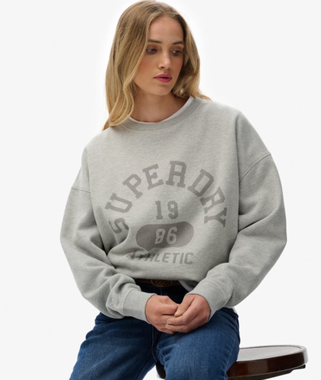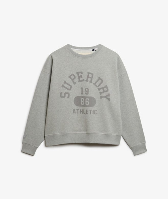 Oversized fit - exaggerated and super relaxed, let your style flow Crew neckline with ribbed trims Lightly brushed lining with dropped shoulders Printed logo across chest Embroidered CULT logo on sleeve Our Athletic Essentials Relaxed Crew Sweatshirt has been designed with strong influences from vintage fashion but elevated with our classic Superdry quality.