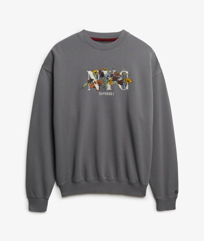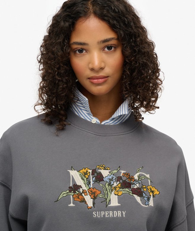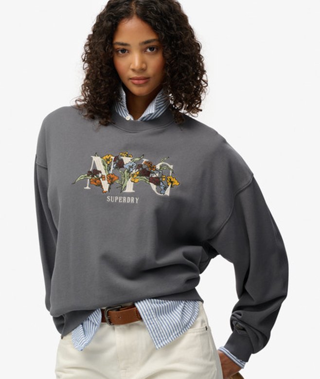 Superdry Women's Night Garden Oversized Crew Sweatshirt Dark Grey / Manor House Grey