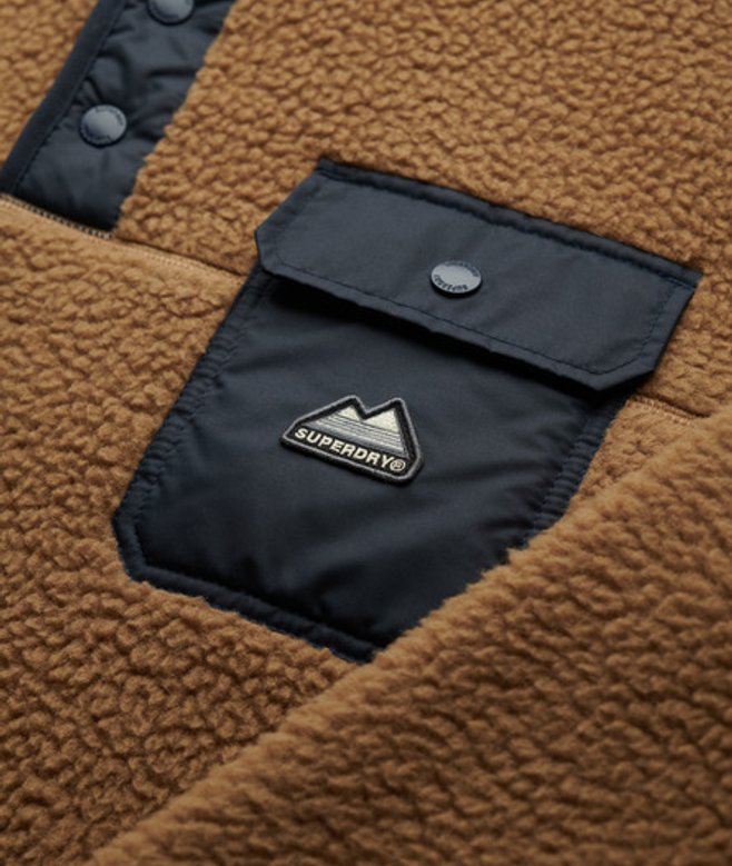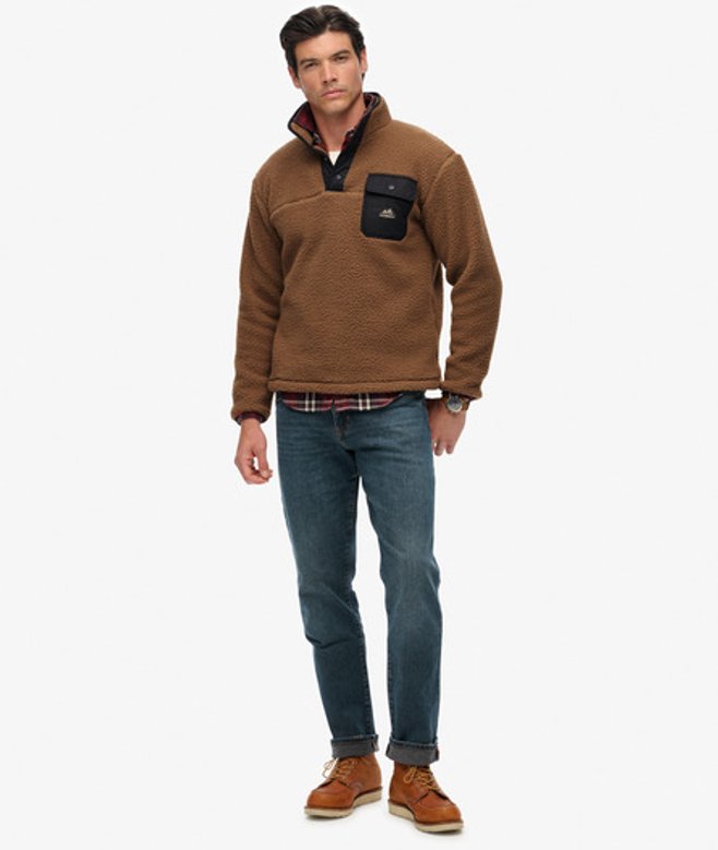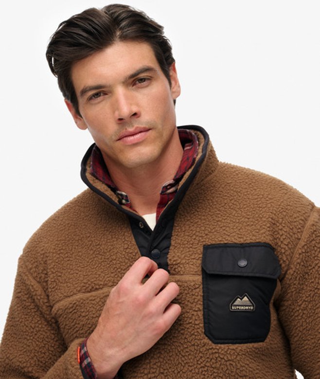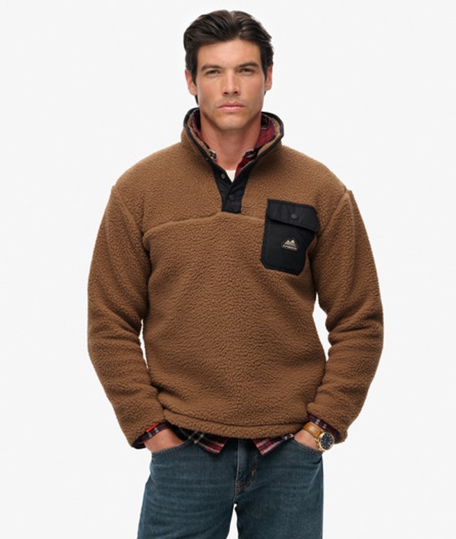 Superdry Men's Fuji Popper Neck Fleece Brown / Pecan Brown