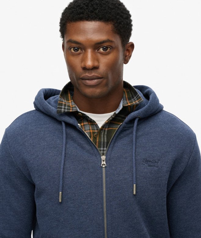 Superdry Men's Essential Logo Half Brushed Zip Hoodie Navy / Heritage Navy Marl