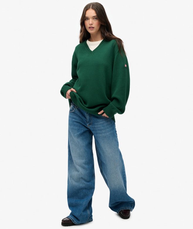 Superdry Women's Oversized V Neck Jumper Green / Dark Green