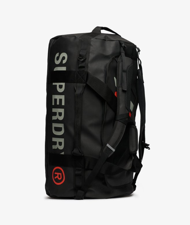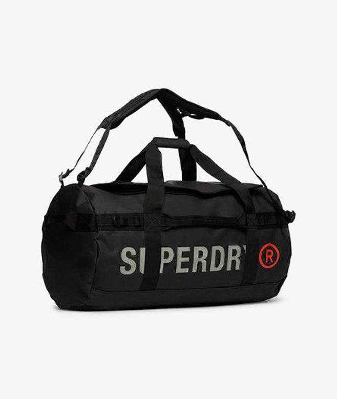 Twin carrier handles with hook and loop fastening Adjustable shoulder strap with padding Adjustable backpack straps Two grab handles End grab handle Top flap with zip pocket Printed graphic on top flap Zipped main compartment Internal mesh compartment with zip fastening Internal zip pocket Printed Superdry branding 79-litre approximate capacity H 39cm x W 55cm x D 36cm Want to show off your versatile sporty spirit? How about with a bag that you can carry in three different ways? Able to be carried like a backpack or over the shoulder, the Tarp Barrel Bag can also be held by your side with its comfortable carrier handles.