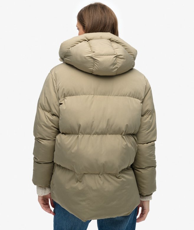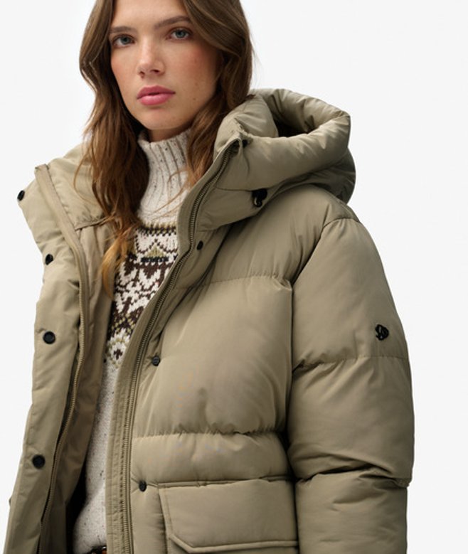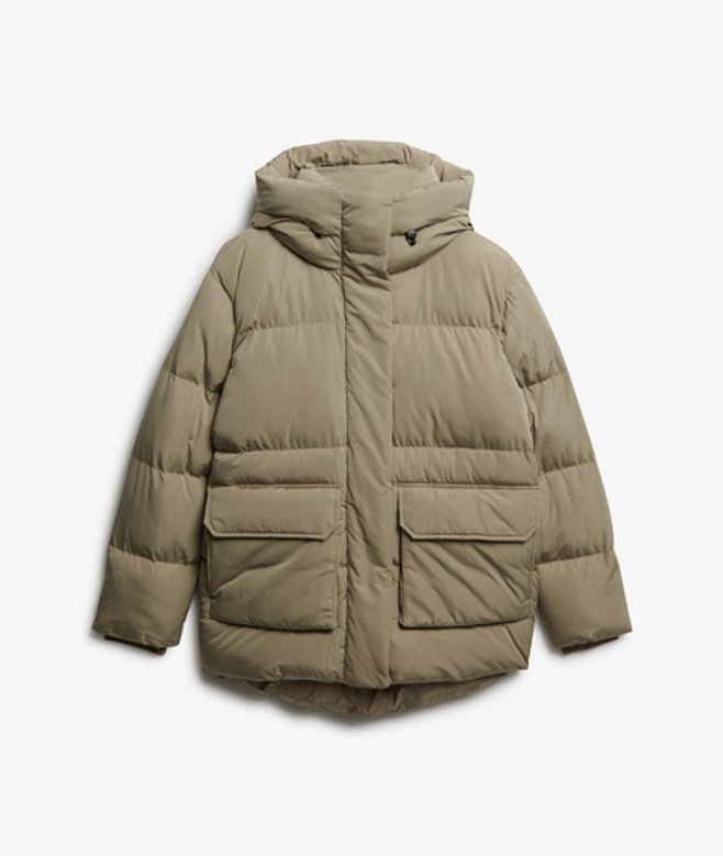 Go for your normal size Durable water repellency - This fabric has been coated with an advanced water-resistant finish Hooded with a second collar and a bungee adjustable hood Zip and popper fastening with four external pockets Ribbed cuffs and padding throughout Signature tab on the back and badge on the sleeve The Short Duvet Puffer Jacket is a gorgeous way to stay comfortable this season.