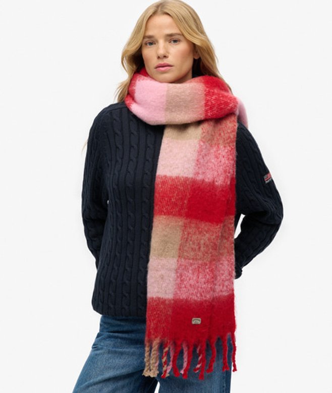 All over check pattern Metal logo badge L 192cm x W 41.5cm The Check Patterned Scarf is a beautifully soft addition to any wardrobe, making it a classic staple accessory for the winter season.